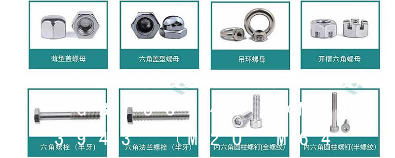 GB6174六角薄螺母——B級—無倒角 GB6175Ⅱ型六角螺母——A、B級 GB6176Ⅱ型六角螺母——細牙—A、B級 GB6177六角法蘭面螺母—A級 GB55六角厚螺母 GB56六角超厚螺母 GB1229大六角螺母(鋼結構用高強度) GB/T 1228-2006 鋼結構用高強度大六角頭螺栓;GB/T 1231-2006 鋼結構用高強度大六角頭螺栓、大六角螺母、墊圈技術條件;GB/T 16939-2016 鋼網架螺栓球節點用高強度螺栓;GB/T 32076.3-2015 預載荷高強度栓接結構連接